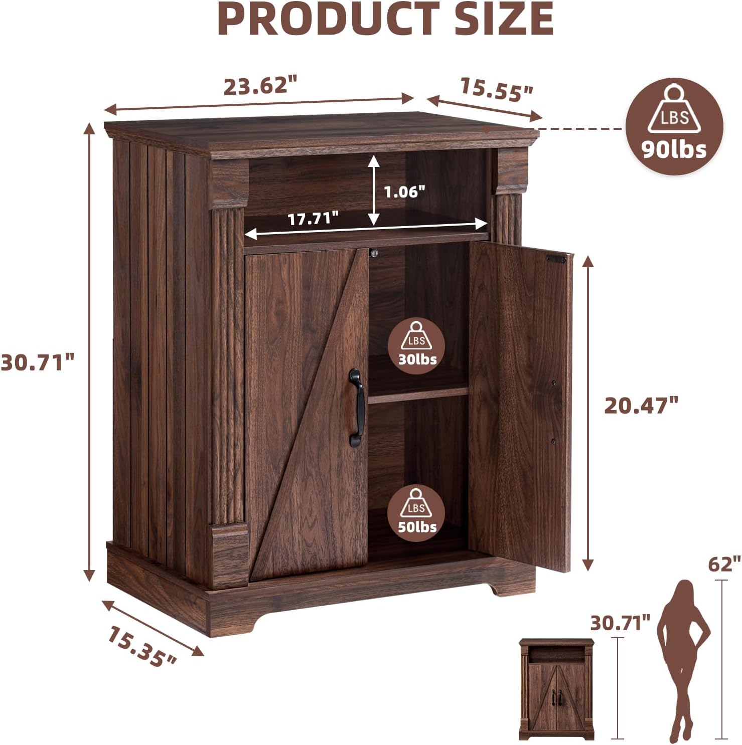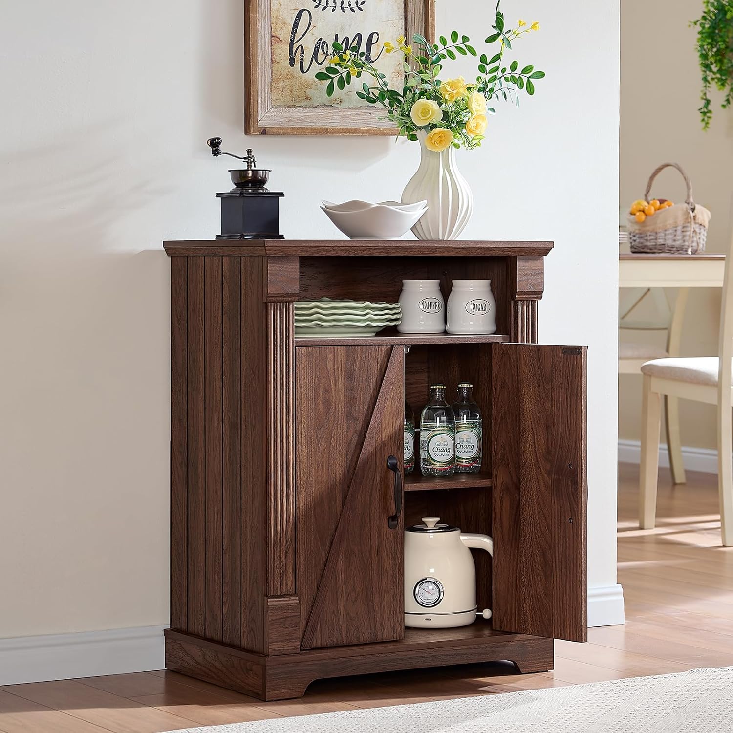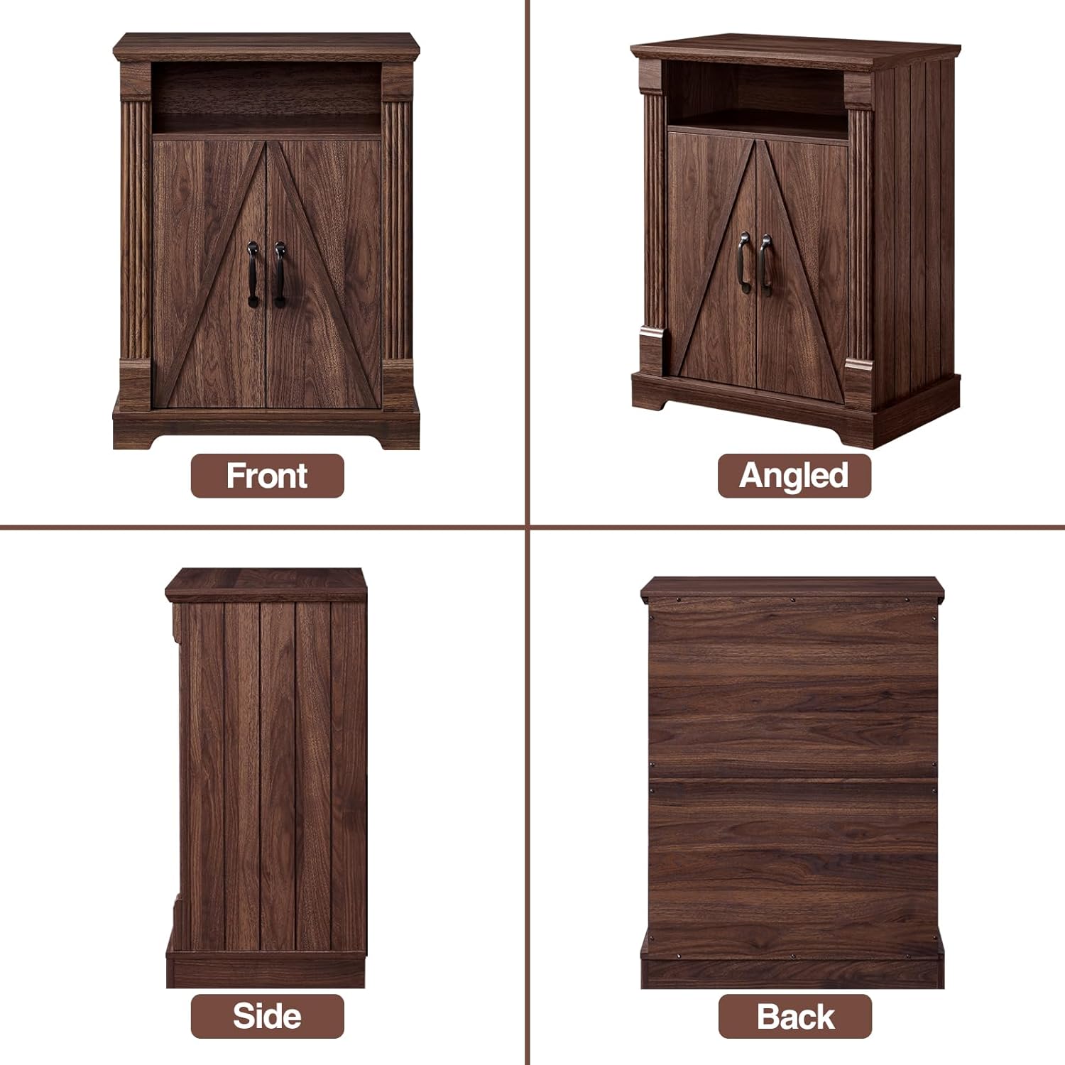 | Additional Features | Adjustable Shelf, Barn Door Design, Roman Column Moulding |