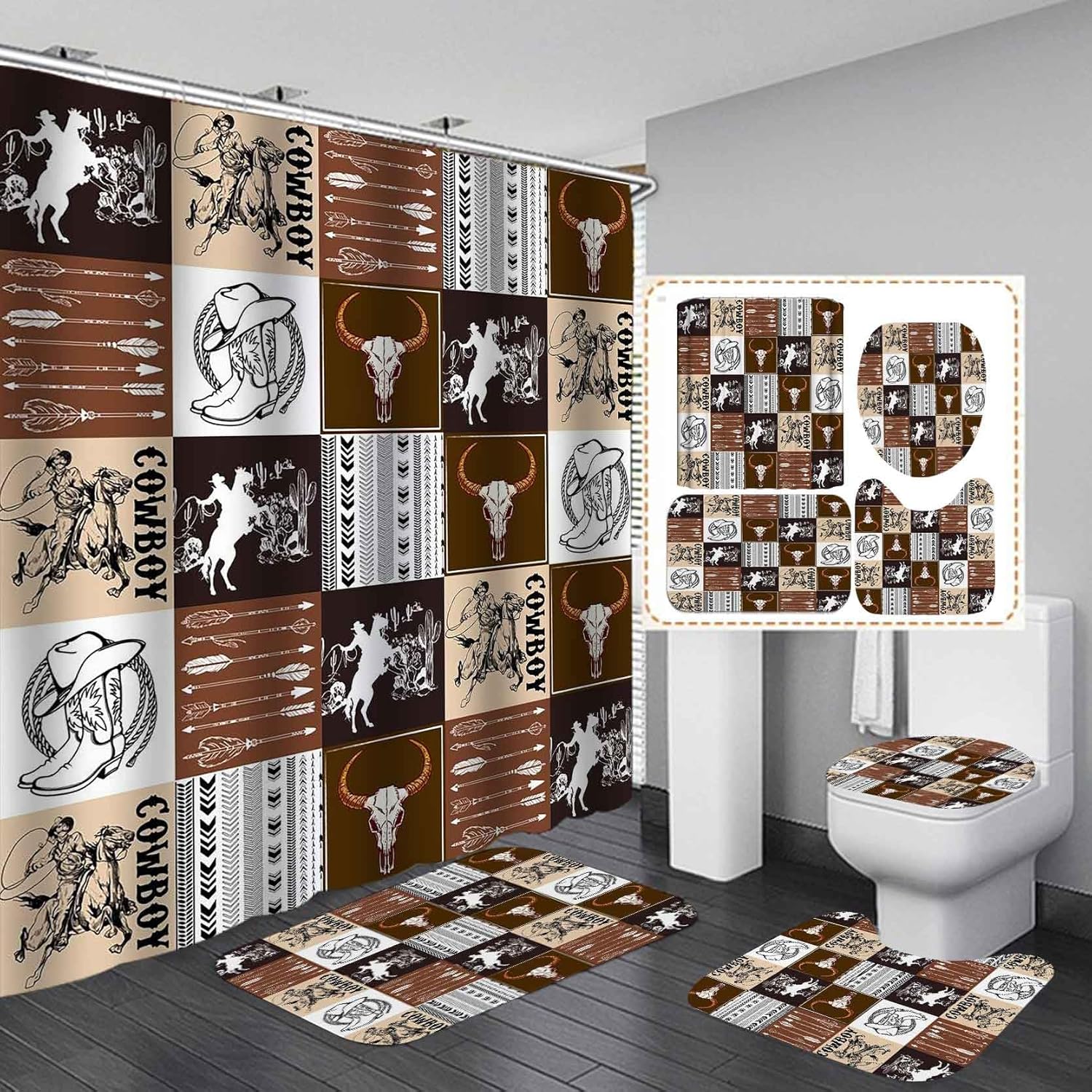 ☀ABOUT "Camille & Andrew"☺Our excellent designers Camille & Andrew have studied fashion and design in France.☺Our design philosophy is to bring you the pure enjoyment of beauty and comfort. Enjoy life, enjoy using Camille & Andrew's products.☺We have a factory with 20 years of professional experience. We have skilled craftsmen and advanced high-definition printing technology. ☀PACKAGE INCLUDED ☺1 Piece Shower Curtain with 12 Pieces Shower Curtain Hooks ☺1 Piece Floor Mat ☺1 Piece U Shaped Mat ☺1 Piece Toilet Lid Cover Mat☀FEATURES☺Amazing Gifts☺Soft Shower Curtain & Mats☺Waterproof Shower Curtain☺Anti-slip Bath Mats☺High Definition Printing & Distinctive Designs☺Durable ☀SPECIFICATIONS☺Shower Curtain: 180 x 180 cm / 72 x 72 inch☺Floor Mat: 45 x 75 cm / 18 x 30 inch☺U Shaped Mat: 37 x 45 cm / 14.5 x 18 inch☺Toilet Lid Cover Mat: 35 x 37 cm / 13.8 x 14.5 inch☀WARM TIPS ☺ Due to manual measurement, please allow a deviation of 1-2cm. ☺ Colors may vary slightly depending on your computer's picture resolution and display settings. ☺ Shower curtain is machine washable. Wash it in water below 80℉. Ironing within 200℉. It is recommended to wash the mats by hand.