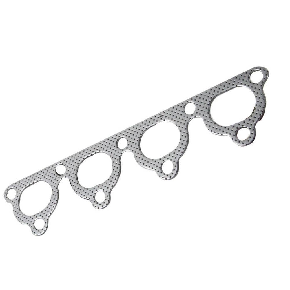 Depending on the engine and vehicle type, the exhaust manifold may consist of a series of pipes or a cast iron assembly.The exhaust manifold collects burned exhaust gases from the engine's cylinders and directs them through the exhaust system to be expelled via the tailpipe.The exhaust manifold gasket creates a seal between the exhaust manifold and the cylinder head to prevent gas leaks.Due to repeated heating and cooling cycles, the components expand and contract over time, which can lead to gasket degradation and leaks.Exhaust leaks can pose risks, damage surrounding engine components, and negatively affect engine performance.Replacing the gasket can help restore proper function. This gasket features a graphite-coated aluminum core laminate construction.Designed for D-Series SOHC engines.Fits models including CRX, Civic, and Del Sol within specified years.Includes 2 exhaust manifold gaskets made from aluminum plate material. Note: This part is made by an independent vendor.Any brand/model mention is for compatibility purposes only.