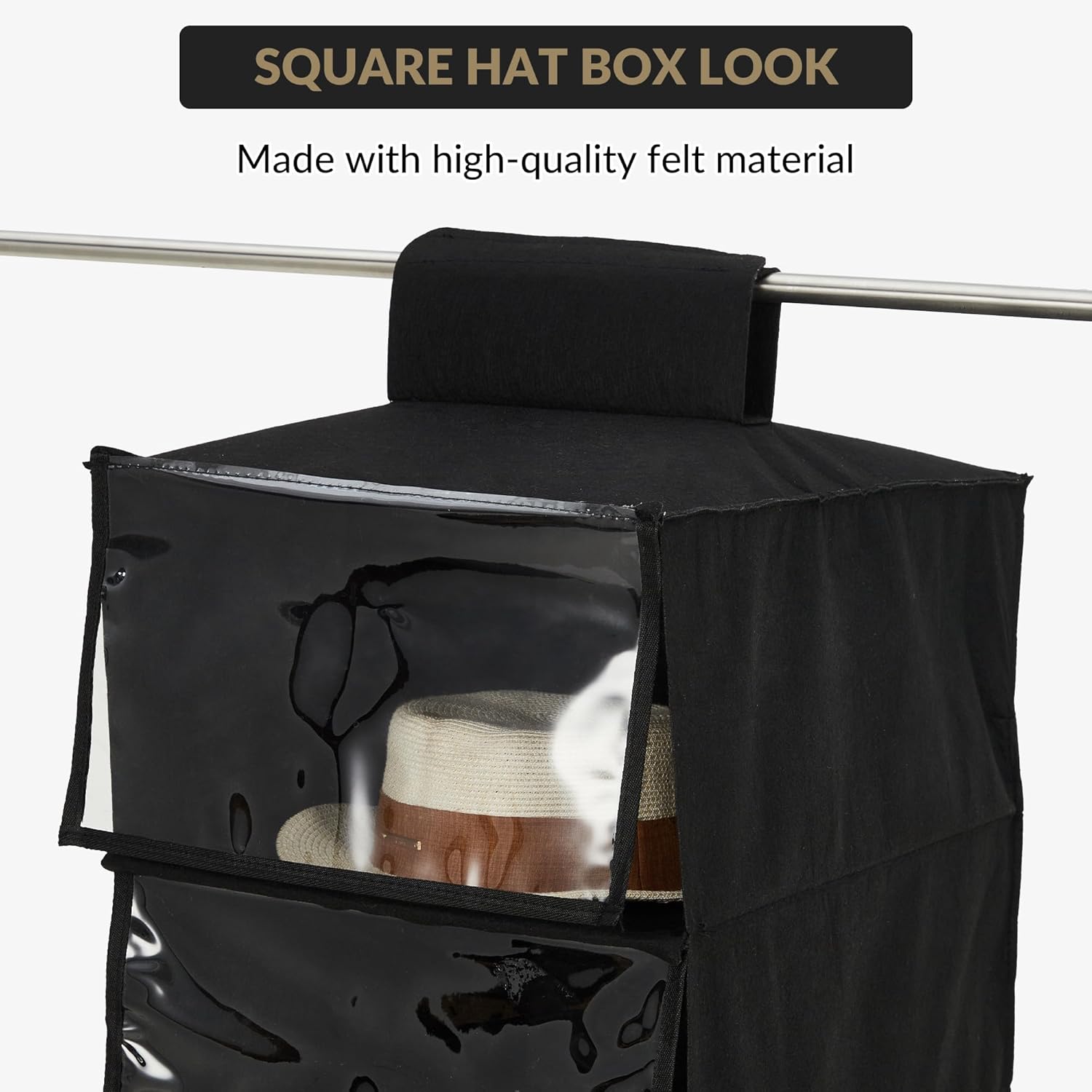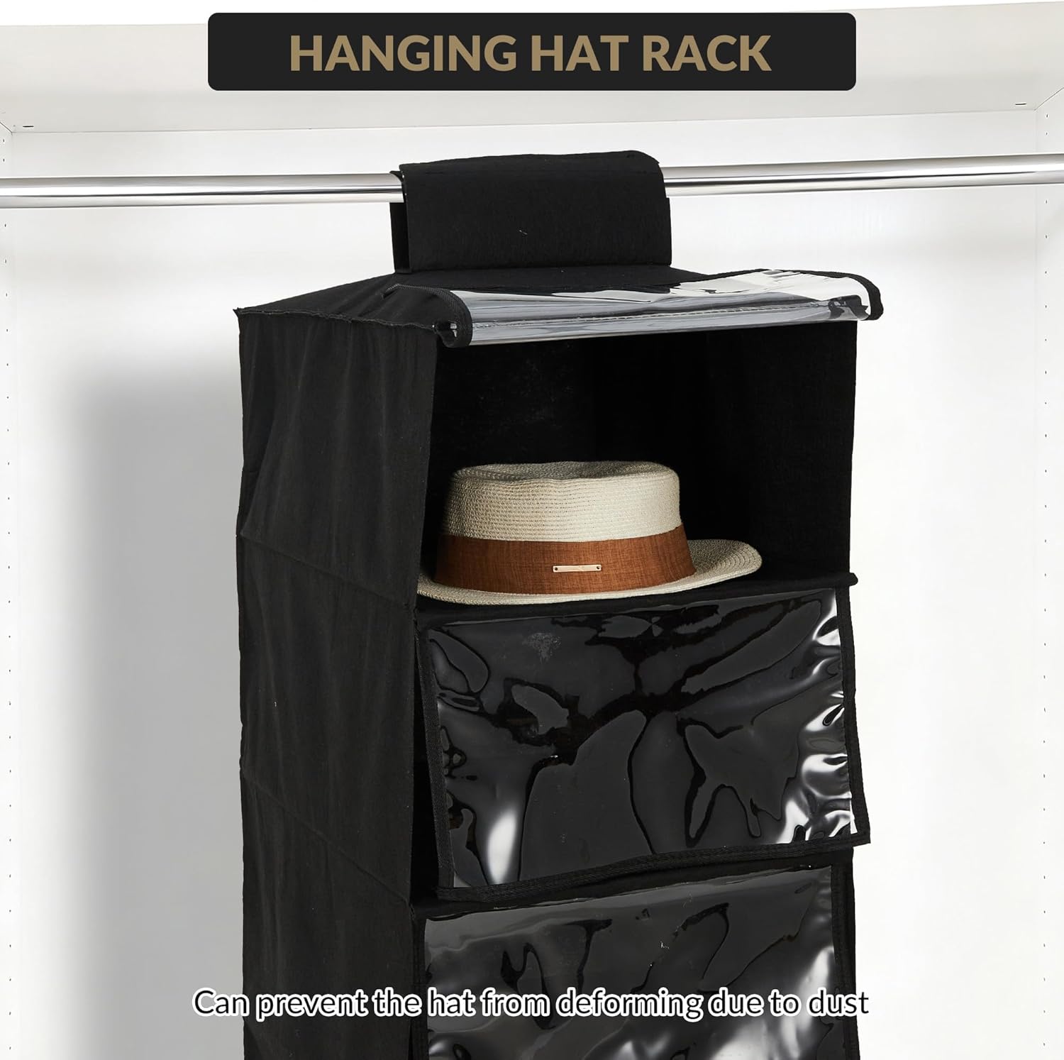 Set of 2 Hanging Hat Organizers with Dust Cover – 6 Shelf Closet Cap Holder Storage Tired of cluttered shelves and squashed hats? Imagine keeping all your baseball caps, cowboy hats, and sun hats organized, dust-free, and easy to find—right in your closet! With 6 roomy shelves and a sleek dust cover, this space-saving hanging hat organizer is a game-changer for any hat lover. Which of your favorite hats would you store first? Tell us how you’d transform your closet with this stylish cap holder! Specification: Material: Felt Fabric Each Compartment Size: 13x17x8 in Overall Height: 48 in Packing List: 2xHat Rack 1xUser Manual Note: Please measure your closet space to ensure the hat organizer will fit comfortably before purchasing. For optimal use, avoid overloading each shelf; keep heavier items off to maintain shape and longevity. The dust cover offers basic protection—make sure hats are clean and dry before storing to prevent odor. When not in use, fold the organizer flat and store in a dry location to prevent damage or misshaping.