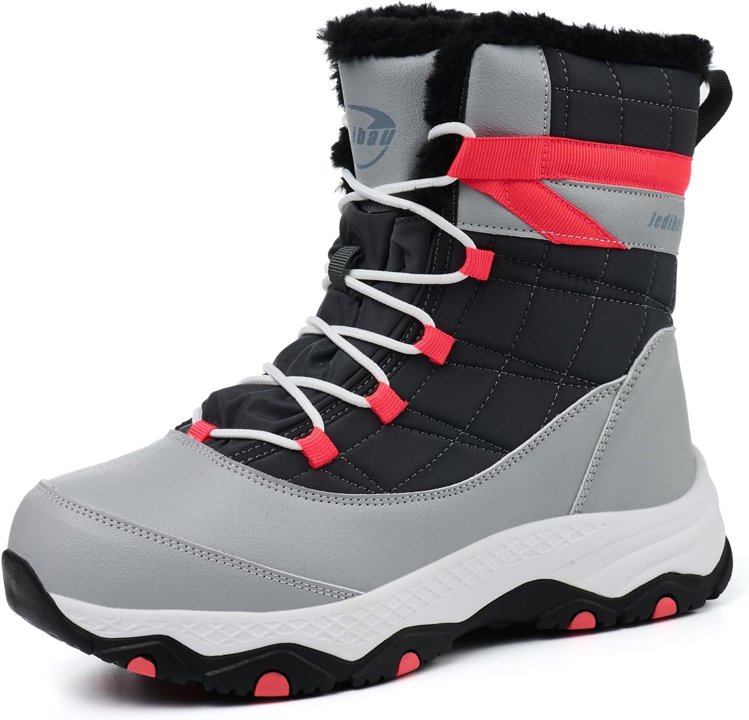 Jedibau Snow Boots for Women Waterproof Mid-Calf Booties Winter Hiking Boot Durable Warm Fur Lined Boot Non-Slip Climbing Cold Weather Lightweight Shoes